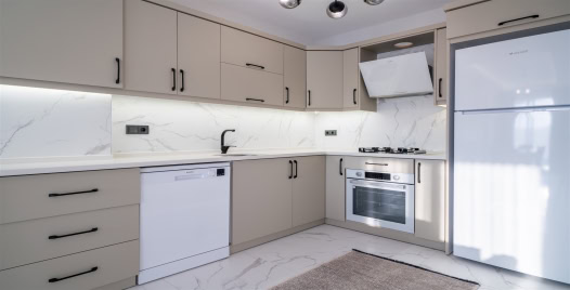 Mutfak: Buzdolabı, Bulaşık makinesi, Çamaşır makinesi, Mikrodalga fırın, Fırın, 4’lü Ocak, Elektrikli su ısıtıcı, Tost makinesi, 12 kişilik yemek takımı, Tava, Tencereler, Çatal bıçak vb. bulunmaktadır.