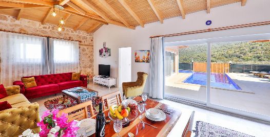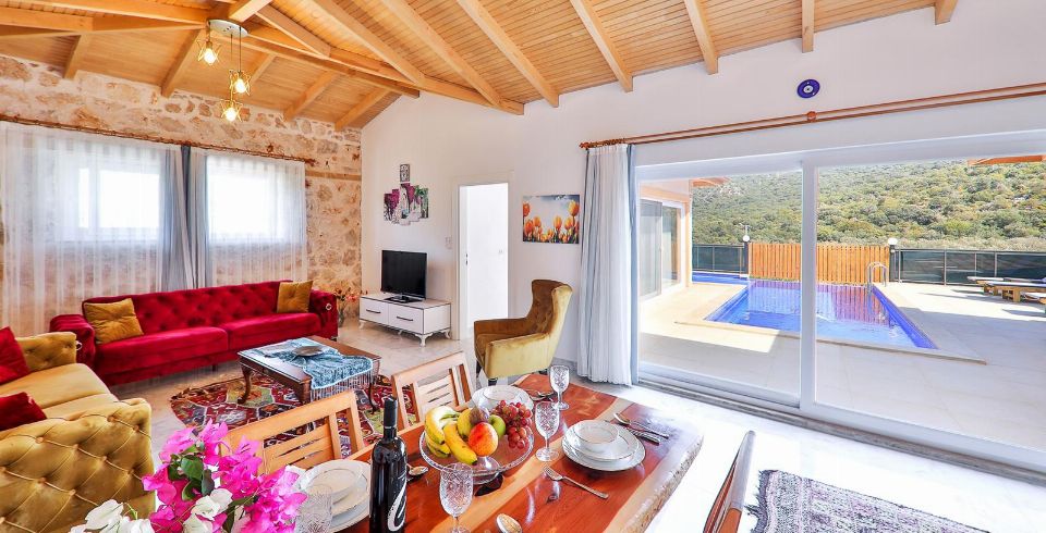 Salon : Villa Arıkan’ın salonunda sizi şık bir oturma grubu ile klima, televizyon, internet, uydu, koltuk, sehpa ile ferah bir salon bekliyor olacaktır. Havuz terasına çıkış yapılmaktadır.
