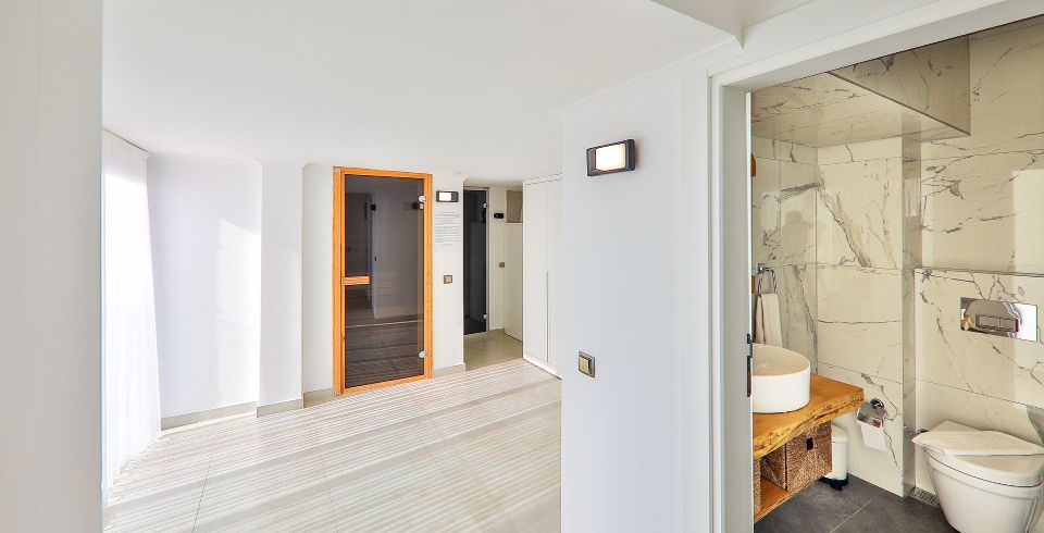 1. Yatak Odası : Çift kişilik süit yatak odası, klima, elbise dolabı, makyaj masası, komodin, lavabo ve banyo bulunmaktadır. Ayrıca jakuzi yatak odası bölümünde yer almaktadır.