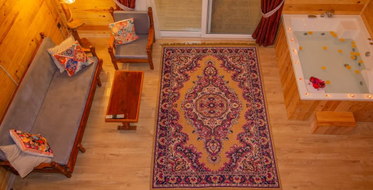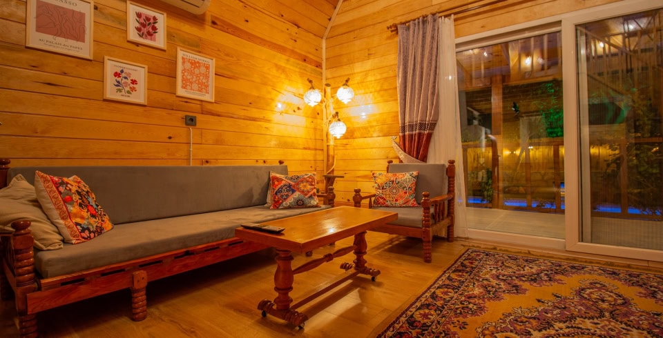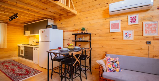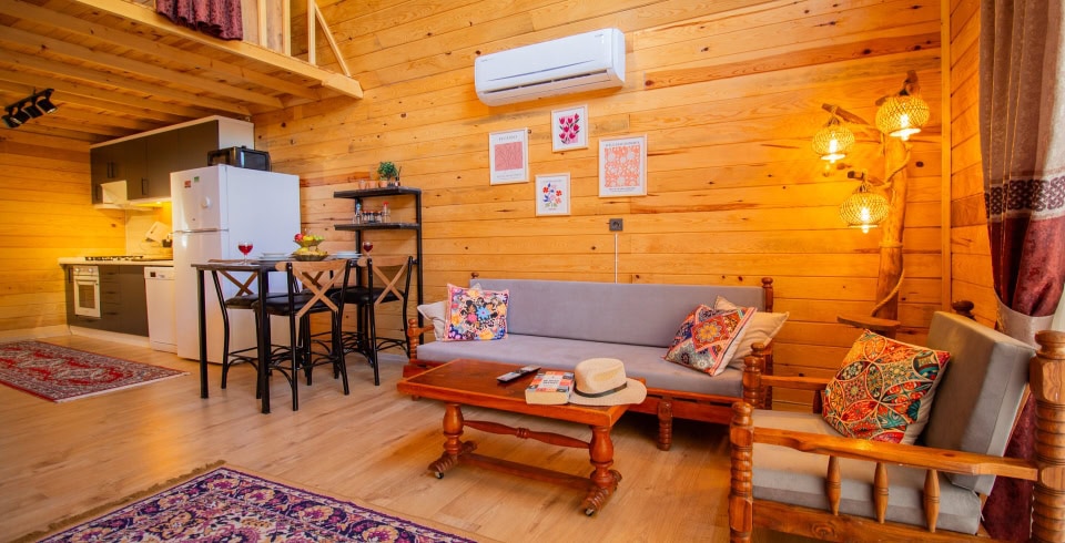 Salon: Özenle döşenmiş salon, modern koltuklar, 2 kişilik yemek masası, jakuzi, LCD TV ve klima bulunmaktadır.