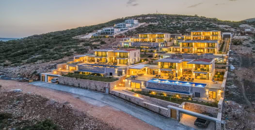 Villa Arya, Kalkan merkeze 15 dakika yürüme mesafesinde bulunuyor. Çarpıcı mimari yapısı ile dikkat çekmektedir. 3 yatak odası bulunmakta ve birinde jakuzi bulunmakta ve deniz manzarasından en iyi şekilde yararlanmak için özenle tasarlanmıştır ve entegre jakuzili kendi sonsuzluk havuzu vardır. Villa Arya, Villa Banu'nun üstünde yer alır ve Kalkan Regency Hotel'in bulunduğu yol üzerinden erişilir. Tesisin özel bir garajı ve Banu Villa'nın üstünde yer alan villanın arkasına inen basamaklı ahşap bir kapısı vardır. Villanın arka tarafındaki giriş kapısı, ışıkla dolu açık planlı bir yaşam alanına açılıyor. Ön kapının sağında, WC ve lavabolu bir vestiyer odasına açılan çamaşır makinesi bulunan bir yardımcı alan var.
