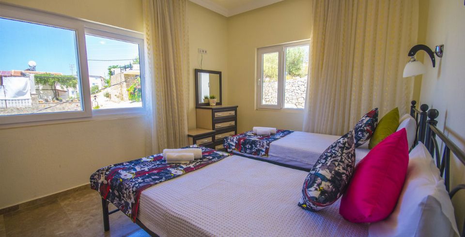 7. Yatak Odası : 2 adet tek kişilik yatak, klima, elbise dolabı, komodin, makyaj masası, banyo ve tuvalet bulunmaktadır.