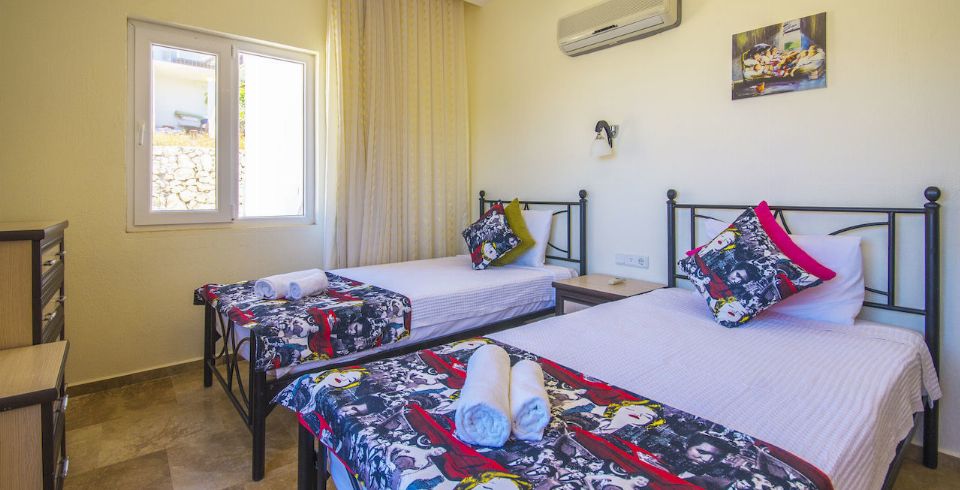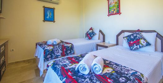 9. Yatak Odası : 2 adet tek kişilik yatak, komodin, elbise dolabı, klima, makyaj masası, banyo ve tuvalet bulunmaktadır.