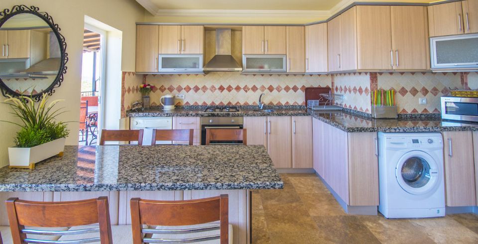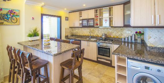 Mutfak : 3 adet mutfağımız bulunmaktadır bunlar hepsi aynı şekilde eşya bulunmaktadır. Buzdolabı, bulaşık makinası, çamaşır makinası, yemek takımı, bıçak çatal takımı, kettle, mikro dalga, fırın, 4'lü ocak, ekmek kızartma makinası bulunmaktadır.