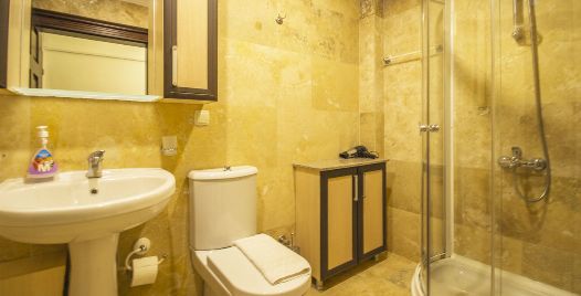 2. Yatak Odası : Çift kişilik yatak, klima, elbise dolabı, komodin, makyaj masası, banyo ve tuvalet bulunmaktadır.