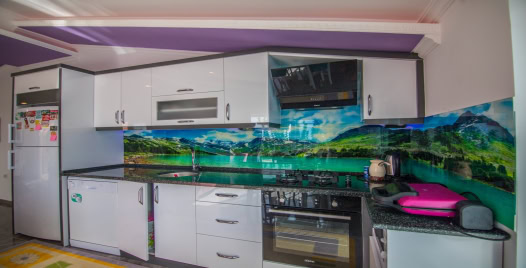 Mutfak : Amerikan mutfak içerisinde buzdolabı, bulaşık makinası, fırın, ocak, yemek masası, yemek masası, yemek takımları, çatal ve bıçak takımları, tencere ve tava takımları, bardaklar bulunmaktadır.