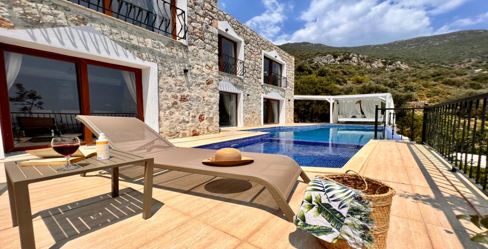 Kalkan’ın Akbel bölgesinde yer alan 3 yatak odalı villamız, havuz bölgesi görünmeyen muhafazakar bir villadır. Kalkan manzarası eşliğinde tatilinizi unutulmaz kılmak ve sevdiklerinizle keyifli vakitler geçirmek için ideal bir seçenektir.