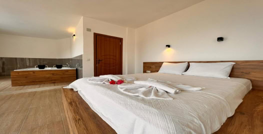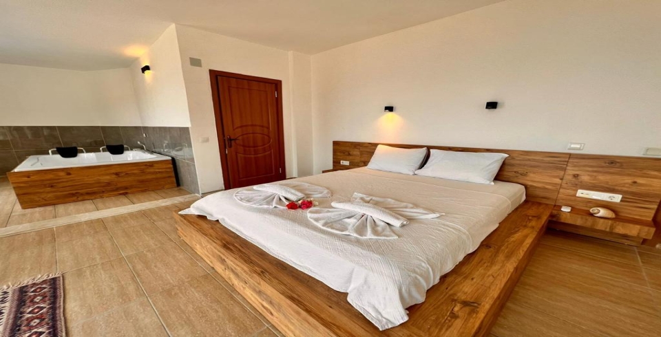 1. Yatak Odası : 1 adet çift kişilik yatak, klima, komodin, elbise dolabı, makyaj masası, jakuzi, banyo ve tuvalet bulunmaktadır.