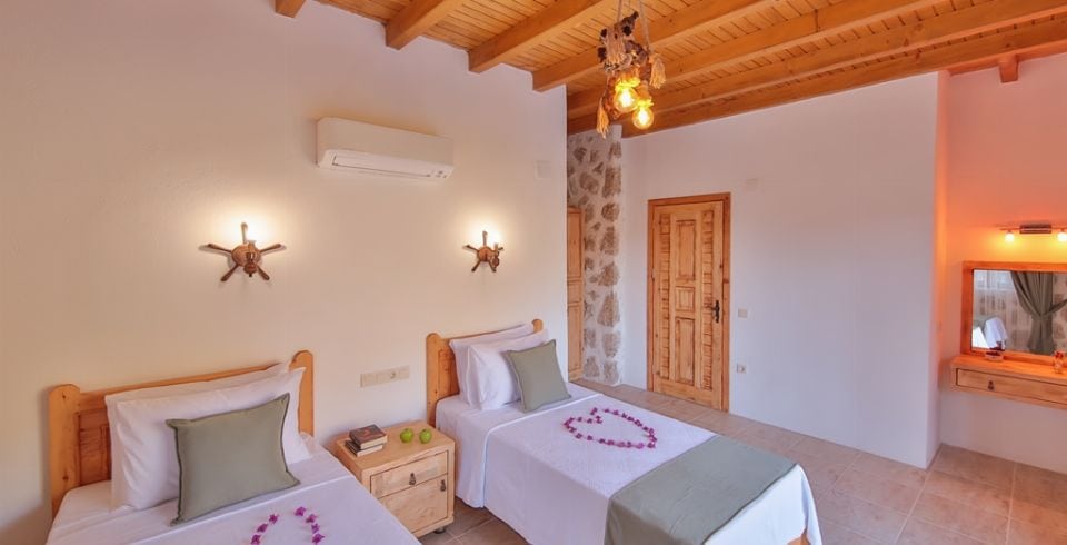 2. Yatak Odası : İki adet tek kişilik yatak, klima, komodin, makyaj masası, elbise dolabı, banyo ve tuvalet bulunmaktadır.