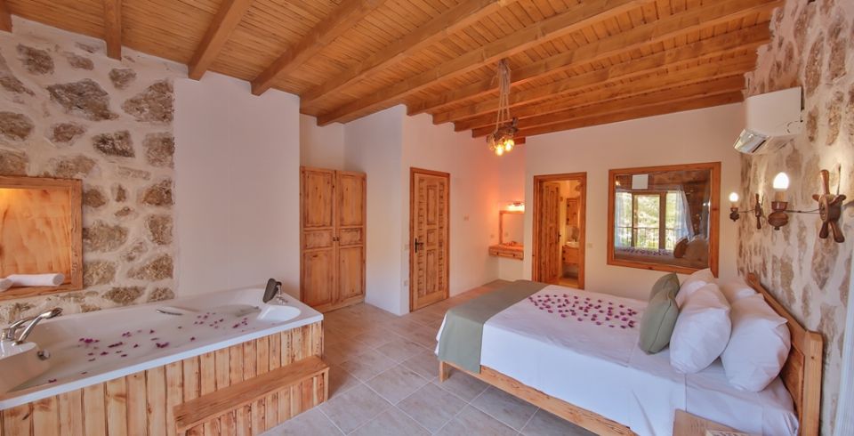 1. Yatak Odası : Çift kişilik yatak, klima, jakuzi, komodin, makyaj masası, elbise dolabı, banyo ve tuvalet bulunmaktadır.