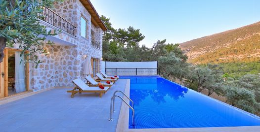 Villamız Kalkan İslamlar bölgesinde konumlanmıştır. Villamız da 2 adet süit yatak odası ve bir yatak odasında jakuzi bulunmaktadır. Muhafazakar olan villamız balayı villası olarak da genç çiftlerimiz tarafından tercih edilmektedir. Taş mimarisi ile göz büyüleyen villamız oldukça geniş bahçe ve havuz terası aynı zamanda tamamen korunaklı özel yüzme havuzu bulunmaktadır. Sizleri kiralık tatil villamız da ağırlamak isteriz.