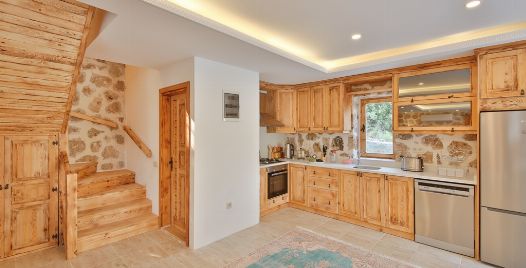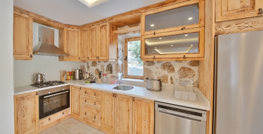 Mutfak : Villamızın mutfağında buzdolabı, bulaşık makinası, çamaşır makinası, 4'lü ocak, ketıl, ekmek kızartma makinası, 4 kişilik yemek takımı bulunmaktadır.