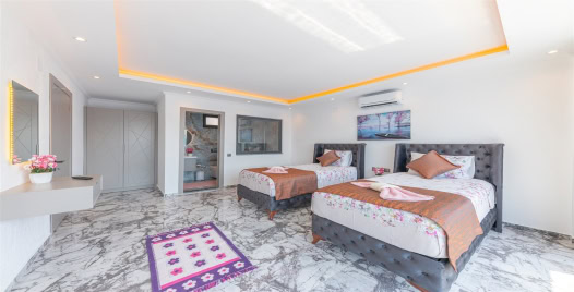 3. Yatak Odası : 2 adet tek kişilik yatak, klima, komodin, makyaj masası, banyo ve lavabo bulunmaktadır.