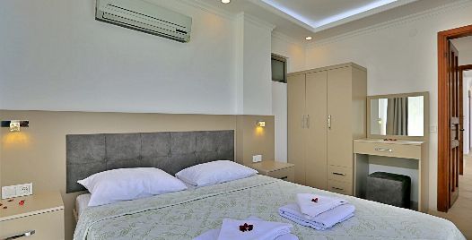 3. Yatak Odası : Çift kişilik yatak odası, klima, elbise dolabı, makyaj masası, komodin, banyo, tuvalet bulunmaktadır.