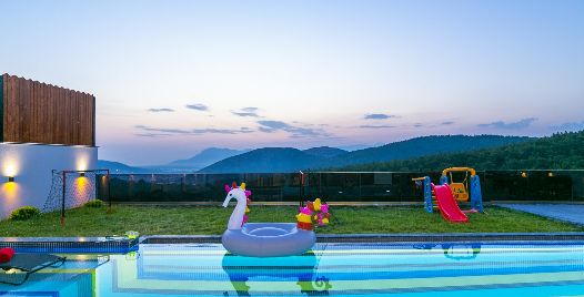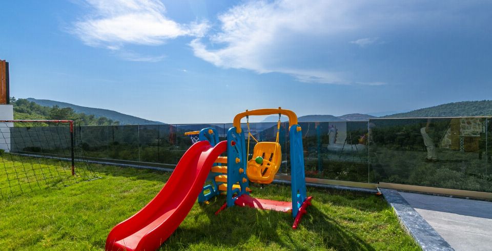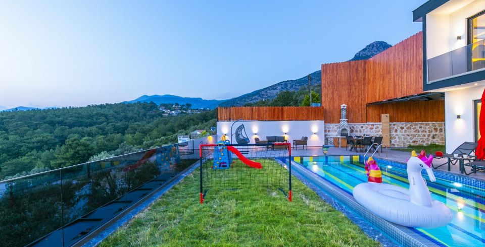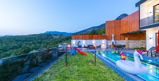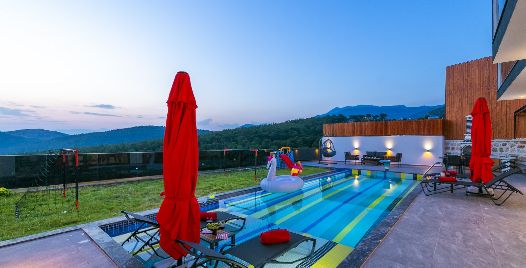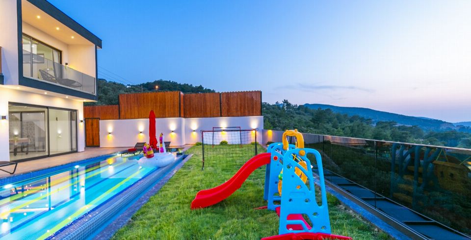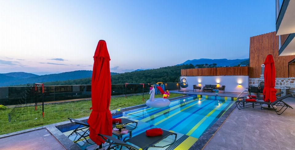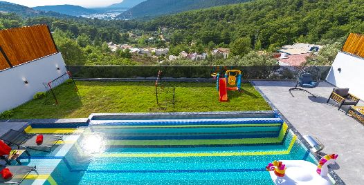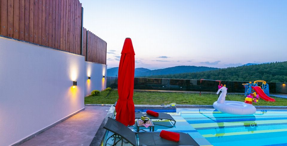 Havuz ve Bahçe: Villamızın havuzu ise etrafı dışarıdan görülmeyecek şekilde korunaklı olup sizlere huzurlu ve keyifli havuz deneyimi sunmaktadır. Bahçe mobilyası, barbekü, salıncak, langırt. dark., masa tenisi, hokey masası , spor aletleri oyun parkı minyatür kale şezlong ve güneş şemsiyesi bulunmaktadır.