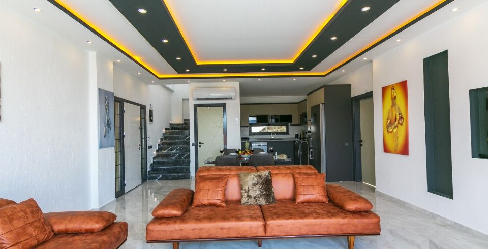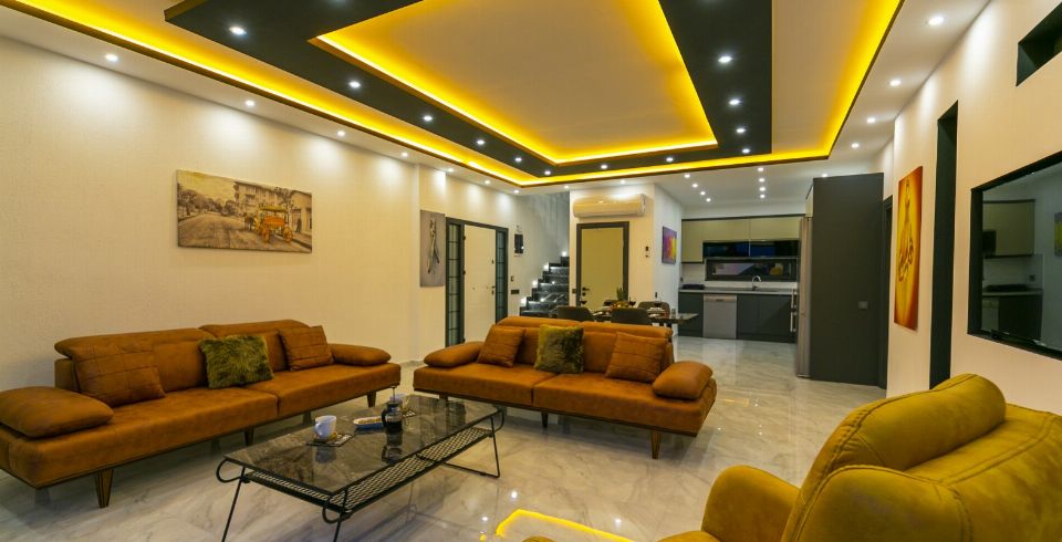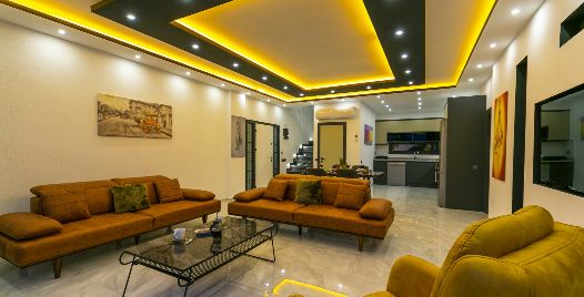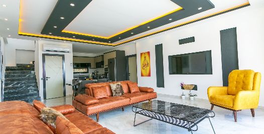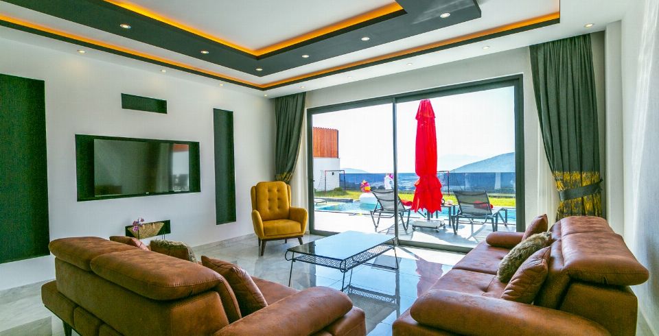 Salon : Salon kısmında; Oturma grubu, televizyon, klima, sehpa, internet ve havuz terasına çıkış bulunmaktadır.