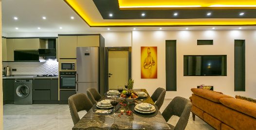 Mutfak : Mutfak bölümümüzde, buzdolabı, bulaşık makinesi, çamaşır makinesi, fırın, çatal & bıçak takımı, yemek takımı, kettle vb. mutfak ekipmanları bulunmaktadır.