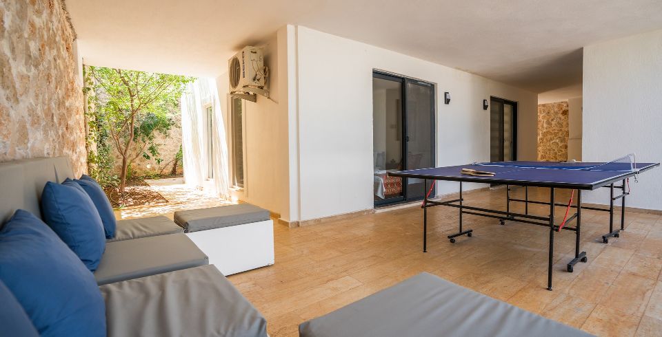 Salon : Salonda klima uydu alıcı, TV, DVD Player, Netflix bağlantısı, Playstation, çeşitli kart ve kutu oyunları, oturma grubu, lavabo yer almaktadır. Salon havuz katındadır. Bu alanda da oturma gurubu, masa ve sandalye bulunur.