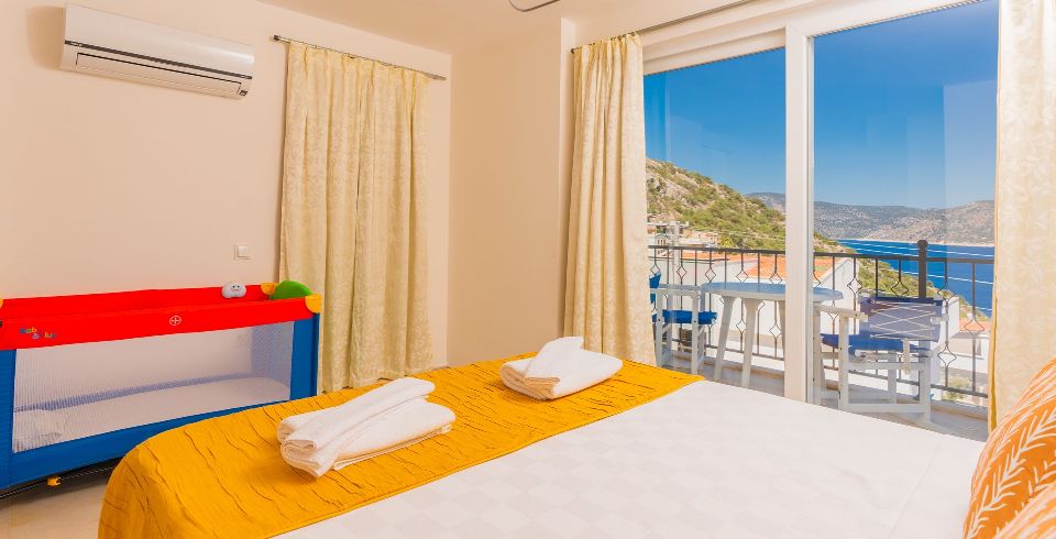 1. Yatak Odası : Çift kişilik konfor yatak, çocuk yatağı, klima, gardırop, komodin, balkon ve banyo-lavabo yer almaktadır.
