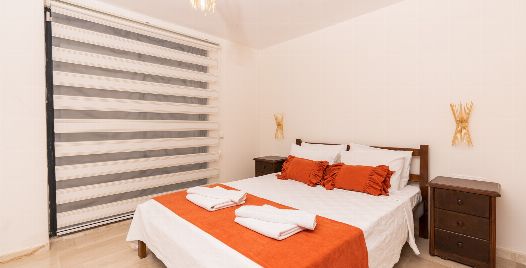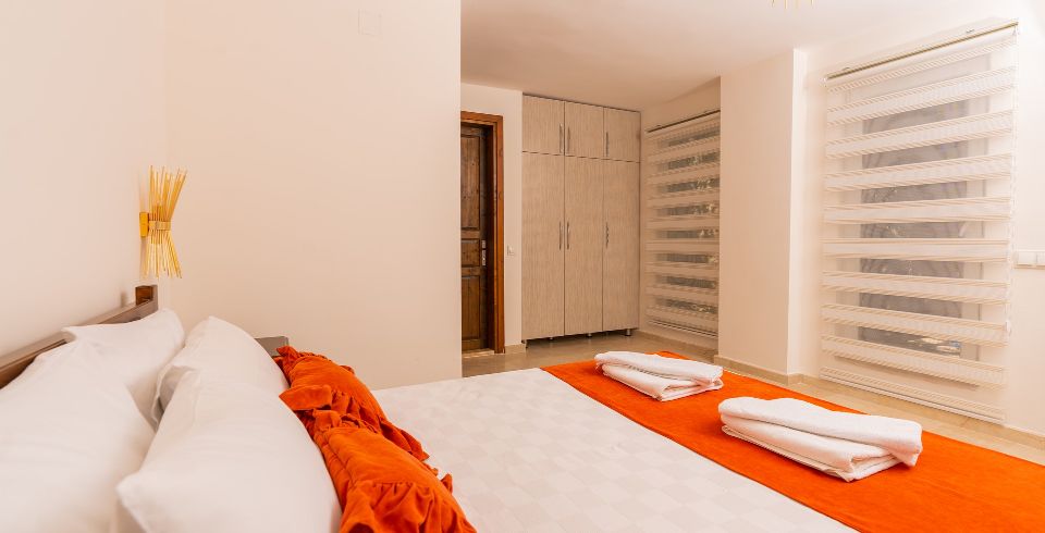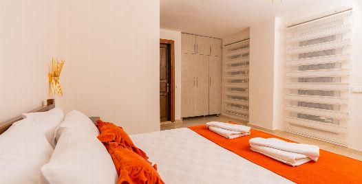 4. Yatak Odası : Çift kişilik yatak, komodin, klima, gardırop, banyo-lavabo, makyaj masası yer almaktadır.