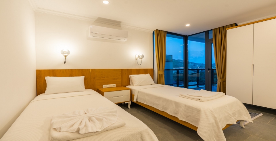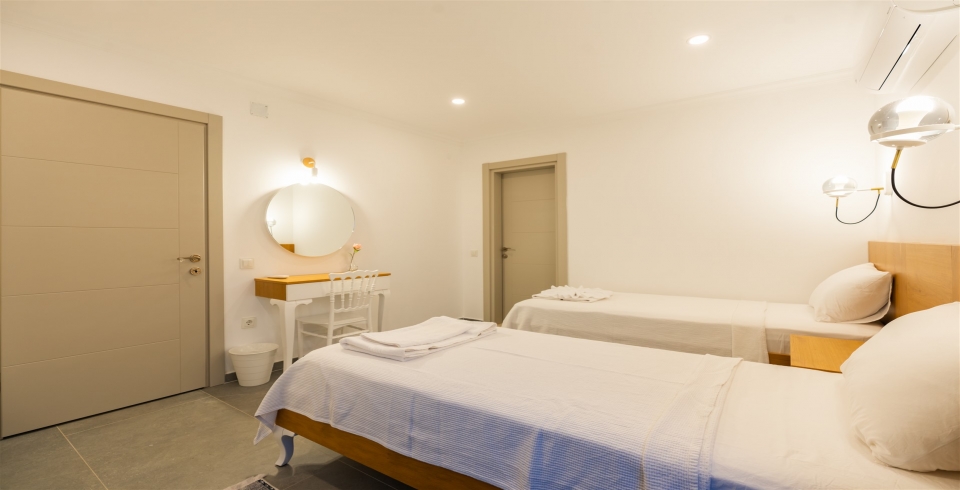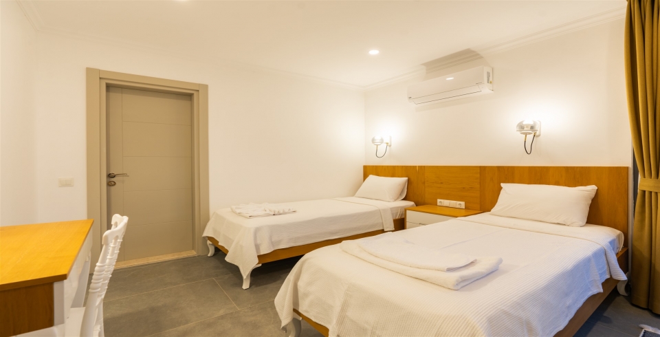 3. Yatak odası: 2 adet tek kişilik yatak, komodin, klima, makyaj masası, banyo ve tuvalet bulunmaktadır .