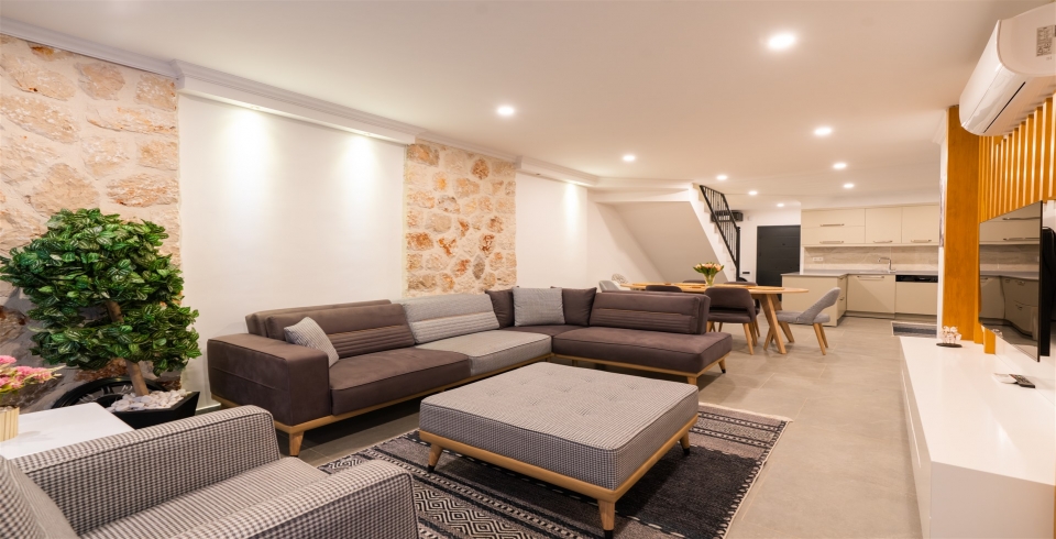 Salon: Villamızın Salonunda Oturma grubu , televizyon , uydu alıcısı ,yemek masası ve sandalyeler bulunmaktadır.