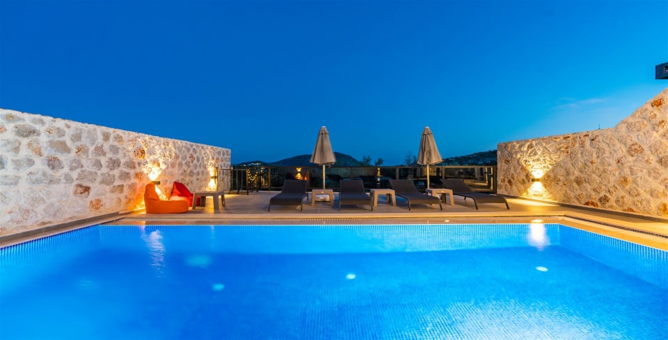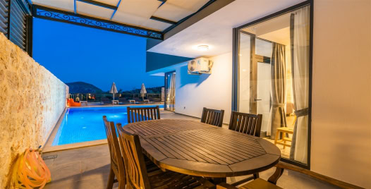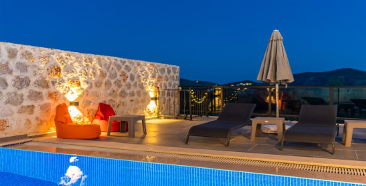 Havuz ve Bahçe: Kiralık yazlık villamızın özel yüzme havuzu ve havuz terasında Şezlonglar , mangal , yemek masası ve sandalyeler bulunmaktadır.