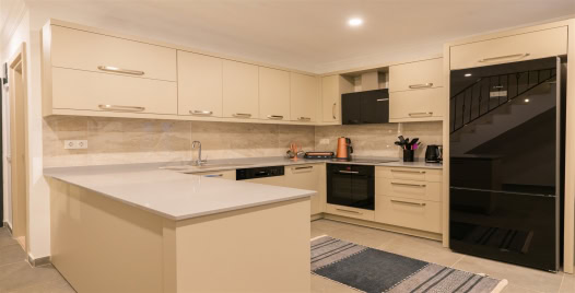 Mutfak: Amerikan Mutfak , buzdolabı , çamaşır makinası , bulaşık makinası , ankastre fırın , mikrodalga fırın , 4'lü ocak , tost makinası , elektrikli su ısıtıcısı, yemek takımı , çatal bıçak seti , tavalar , tencereler , bardaklar bulunmaktadır.
