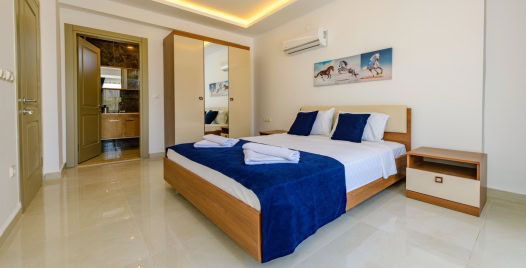 1.Yatak Odası: Çift kişilik yatak, jakuzi, klima,elbise dolabı, makyaj masası,tuvalet ve banyo bulunmaktadır.