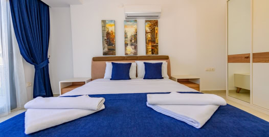 3.Yatak Odası:Çift kişilik yatak, klima, elbise dolabı, makyaj masası,tuvalet ve banyo bulunmaktadır.