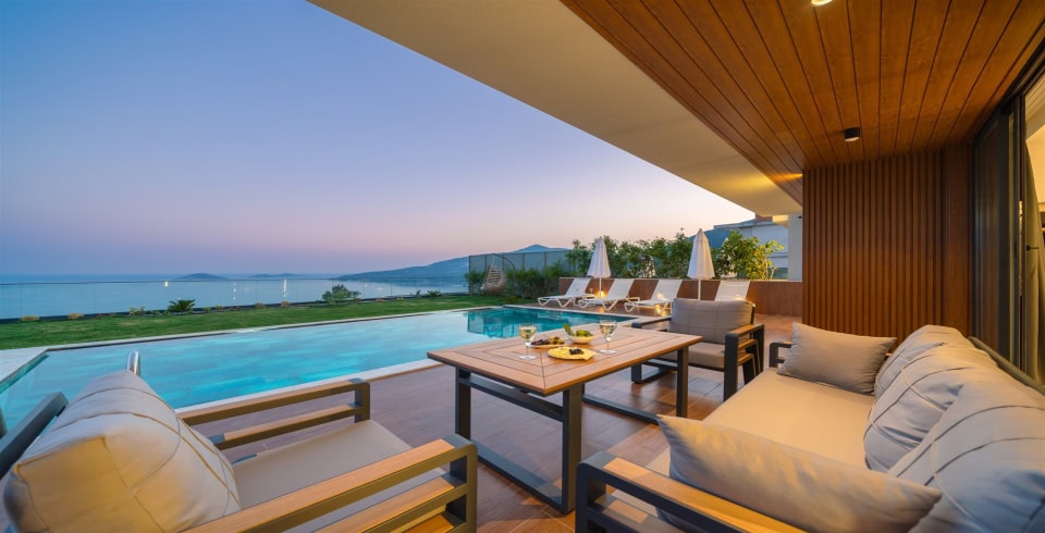 Havuz Ve Bahçe : Müthiş deniz manzarasına sahip bahçe alanında özel yüzme havuzu, şezlong, şemsiye, bahçe mobilyaları, barbekü, yemek masası, oturma alanı, salıncak, bulunmaktadır.