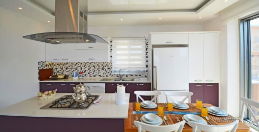 Mutfak : Villamızın geniş Amerikan mutfağı ile sizlere kendi evinizin mutfağı gibi hissettirecek. Ayrıca mutfakta klima, bulaşık makinası, buzdolabı, çamaşır makinası, mikrodalga fırın, Su ısıtıcısı, fırın, 4`lü ocak seti ,yemek masası ile tava tencere vb. mutfak araç gereçlerini kullanma fırsatını sizlere sunuyoruz.