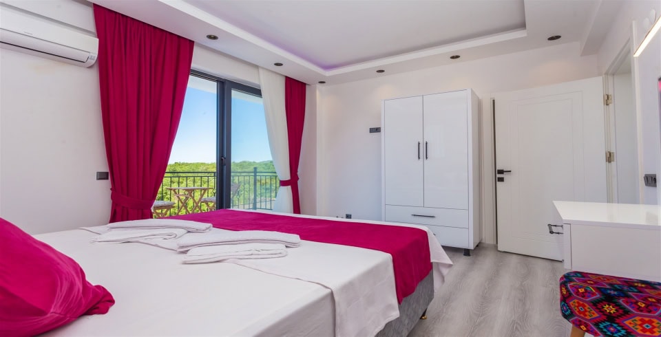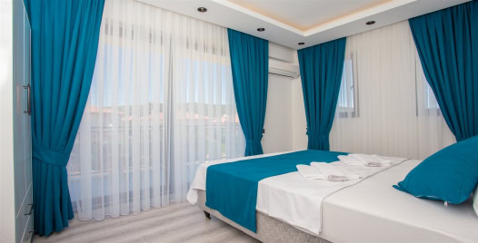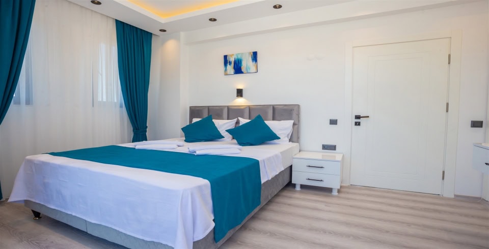 2. Yatak Odası : Süit yatak odası çift kişilik konfor yatak, klima, gardırop, ve banyo-WC yer almaktadır.
