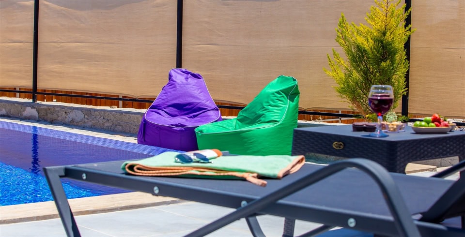 Villamız Kaş Çukurbağ'da bulunmaktadır. Muhteşem doğa manzarasına sahip olan villamız mimarisiyle çekirdek aileler ve arkadaş grupları için oldukça uygundur. 3 yatak odalı 6 kişilik kapasiteye sahiptir. Konforunuz için özenle dizayn edilmiş olup lüks bir tatil için ihtiyacınız olan her detayı barındırmaktadır. Villamızın salonundan havuz terasına çıkış yapılmaktadır.