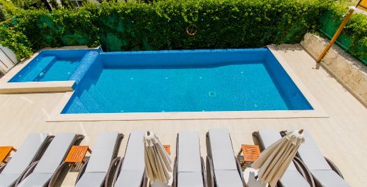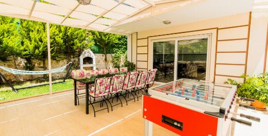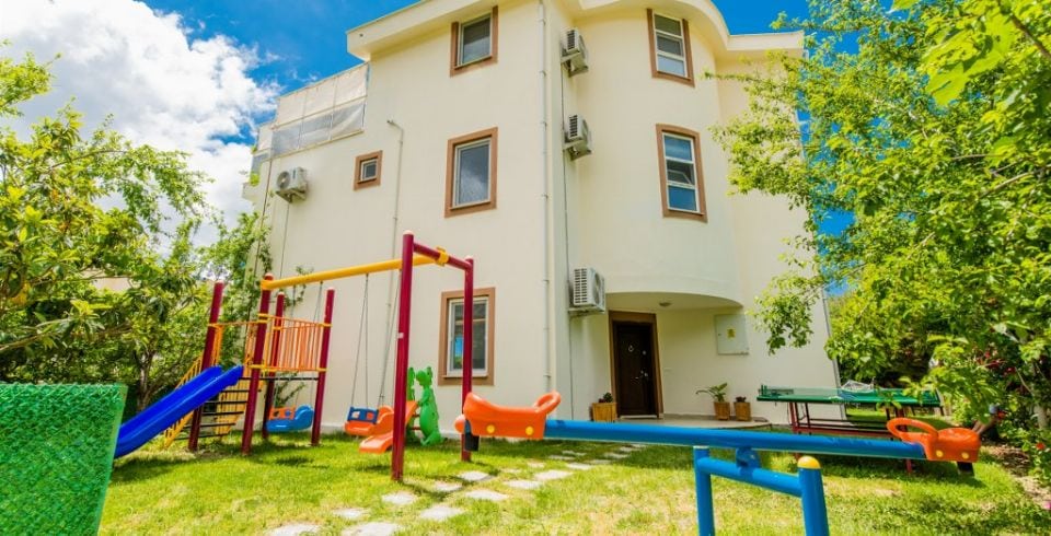 Havuz ve Bahçe : Bahçede havuz, yemek masası, perguleli oturma gurubu salıncak, oyun parkı, masa tenisi ,diksiyon bisikleti, hamak, langırt ,tahtara valli ve sandalyeler, barbekü, şezlong ve güneş şemsiyesi bulunmaktadır. Havuz bakımı günlük düzenli olarak görevli tarafından yapılmaktadır.