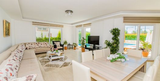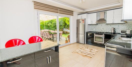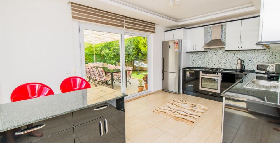 Mutfak : Villamızın içinde modern Amerikan mutfak bulunmaktadır. Mutfakta mikrodalga fırın, bulaşık makinası, ankastre fırın, buzdolabı, çamaşır makinası, ankastre 4’lü ocak, elektrikli su ısıtıcı kettle, ekmek kızartma makinası, tencere ve tava takımı, yemek takımı, kaşık ve çatal seti ve bardaklar bulunmaktadır. Havuz başına geçiş bulunmaktadır.