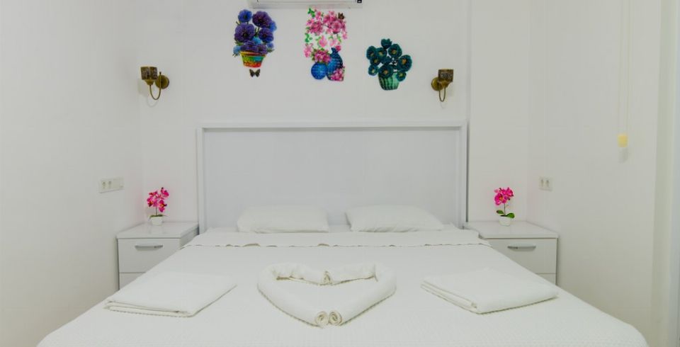 2. Yatak Odası : 1 adet çift kişilik konfor yatak, klima, gardırop, komodin, ve banyo-WC yer almaktadır.