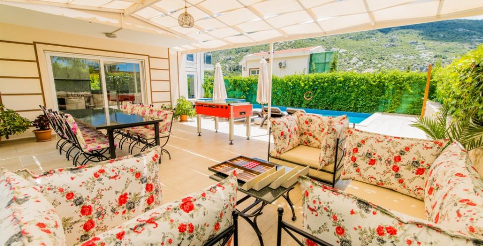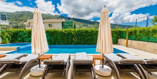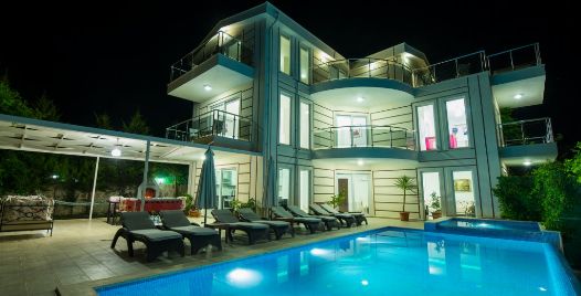 Villamız Kalkan İslamlar Bölgesi’nde bulunmaktadır. Doğa içerisinde bu lüks muhafazakar villa balayı çiftleri kalabalık aile ve arkadaş gurupları için oldukça eğlenceli vakit geçirebileceğiniz seçeneklerimiz arasındadır. 4 yatak odalı 8 kişilik kapasiteye sahiptir. Konforunuz için özenle dizayn edilmiş olup lüks bir tatil için ihtiyacınız olan her detayı barındırmaktadır. Muhteşem bir doğa manzarasına sahip olup , salon bölümünden havuz terasına çıkış yapılmaktadır. Villa ayaz 1 de sinema salonu, jakuzi bulunmaktadır.