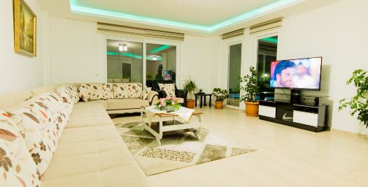 Salon : Salonda klima uydu alıcı, TV, oturma grubu, lavabo yer almaktadır. Salon havuz katındadır. En üst katta dinlenmek ve güneşlenmek için çok geniş bir seyir terası daha vardır. Bu alanda da oturma gurubu ,masa ve sandalye bulunur.