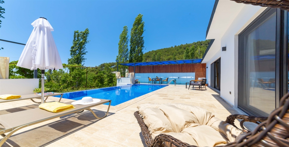Havuz ve Bahçe : Villamızın özel yüzme havuzu, şemsiye, şezlong, barbekü, yemek masası, salıncak bulunmaktadır.