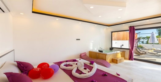 Kalkan İslamlar bölgesinde bulunan villa Ayaz 2 İslamlar muhafazakar balayı yazlık villamızdır.1 yatak odalı olan bu villamız balayı çiftleri için tasarlanmıştır. Villamızın suit yatak odasında 2 kişilik bir jakuzi bulunmaktadır. Havuz terası tamamen korunaklı olan bu villamızda muhafazakar aileler çok rahat edecektir.