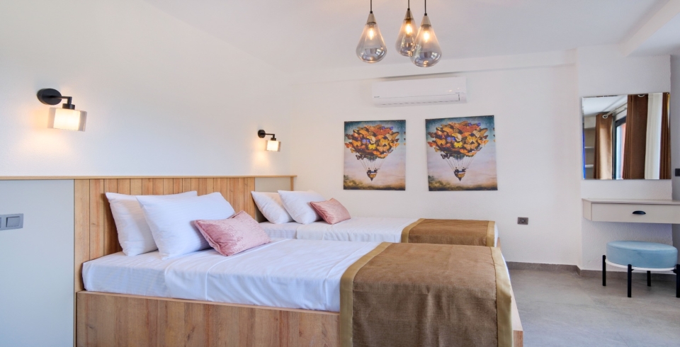 3. Yatak odası: 2 adet tek kişilik yatak, elbise dolabı, komodin, klima, banyo ve tuvalet bulunmaktadır.