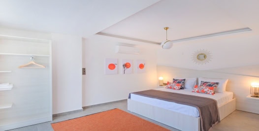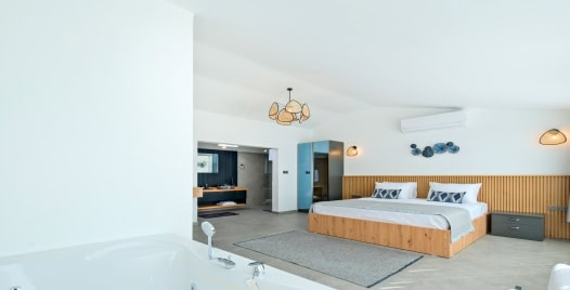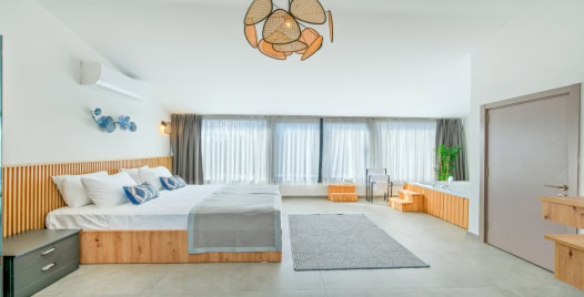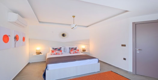 1. Yatak odası: 1 adet çift kişilik yatak, elbise dolabı, komodin, klima ,jakuzi, banyo ve tuvalet bulunmaktadır.
