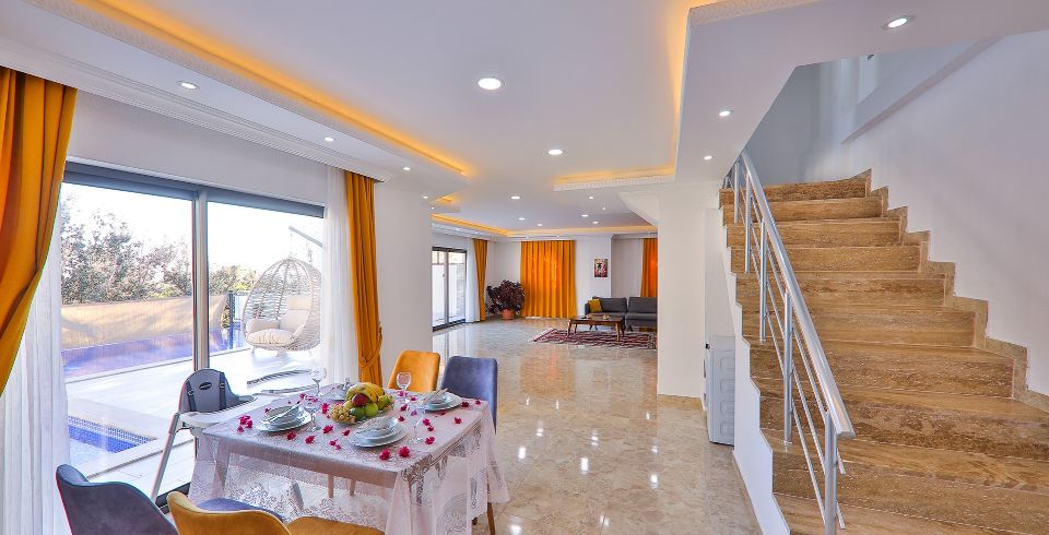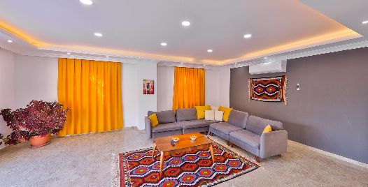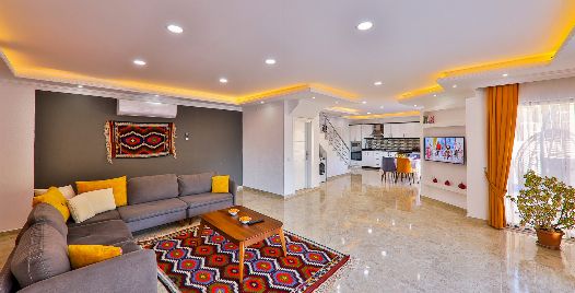 Salon : Salonunda konforlu oturma grubu, klima, TV, internet, uydu alıcı, yemek masası, sehpa bulunmaktadır.