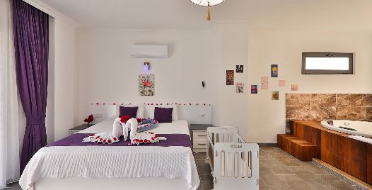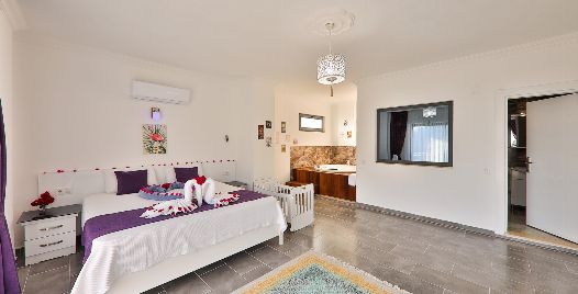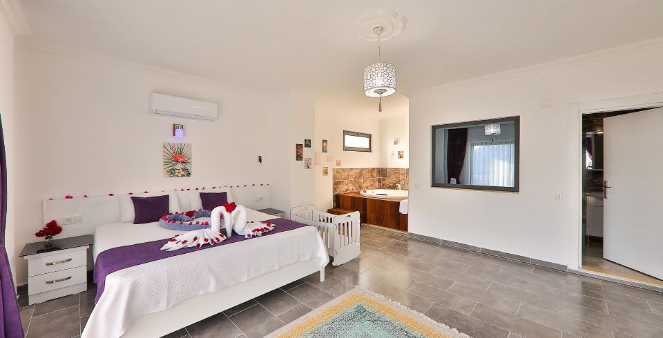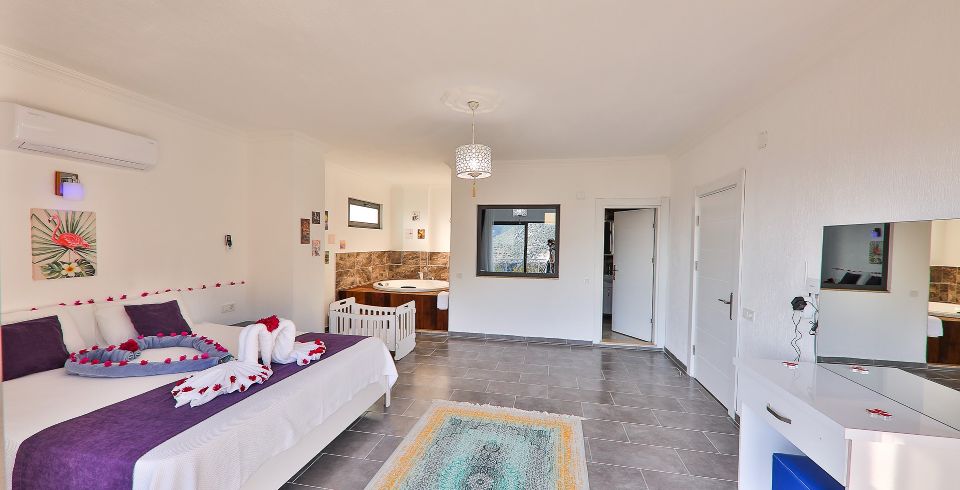 1. Yatak Odası : Çift kişilik yatak, klima, komodin, jakuzi elbise dolabı, makyaj masası banyo ve tuvalet bulunmaktadır.