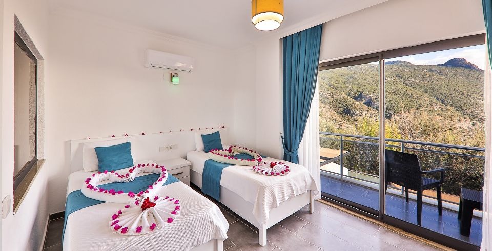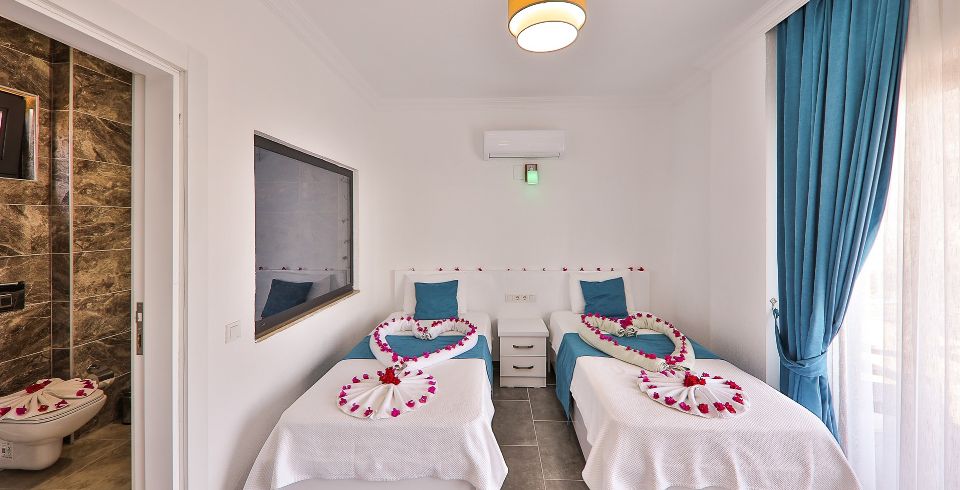 2. Yatak Odası : 2 adet tek kişilik yatak, klima, elbise dolabı, komodin, makyaj masası, banyo ve tuvalet bulunmaktadır.