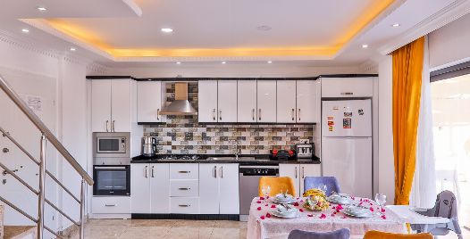 Mutfak : Villamızın mutfağında buzdolabı bulaşık makinası, çamaşır makinası, mikrodalga fırın, tost makinası, 4'lü ocak, ketıl, 4 kişilik yemek takımı bulunmaktadır.