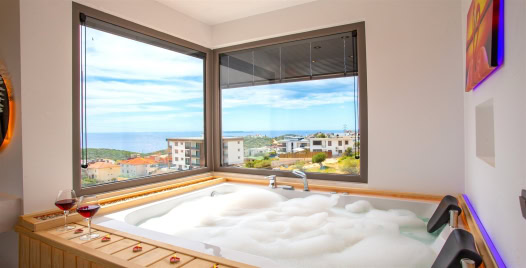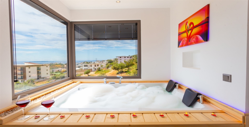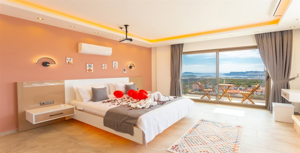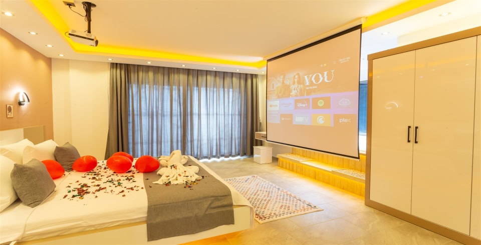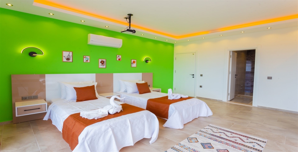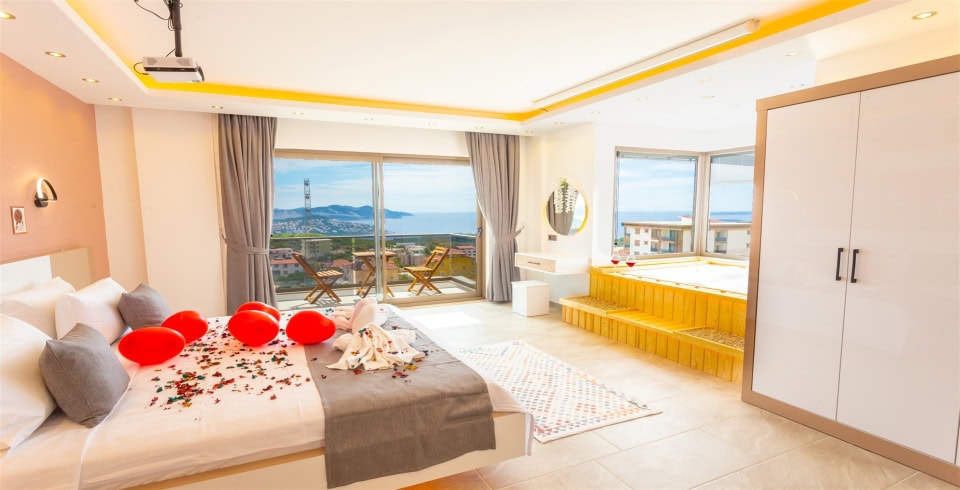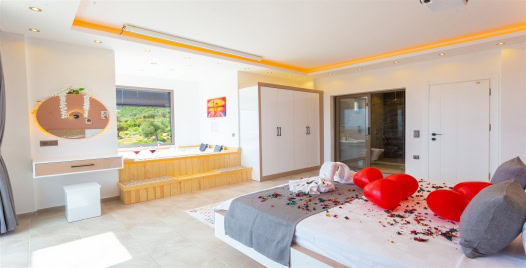 1. Yatak Odası : 1 adet çift kişilik yatak, klima, komodin, projeksiyon makinası, jakuzi, balkon, makyaj masası, elbise dolabı, banyo ve lavabo bulunmaktadır.