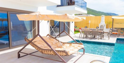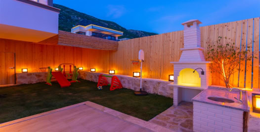 Havuz ve Bahçe : Villamızın bahçesi çocuklu ailelerimiz için oldukça uygundur. İçerisinde çocuklar için kaydırak, salıncak, minin basket potası, mini kale bulunmaktadır. Yalnızca çocukların değil ebeveynlerinin oynamaktan keyif alacağı masa tenisi de bulunmaktadır. 1.50 santimetre sığ özel yüzme havuzunun içinde şezlong bulunan bahçemizde, şemsiye, yemek masası, barbekü alanı ve salıncak bulunmaktadır.