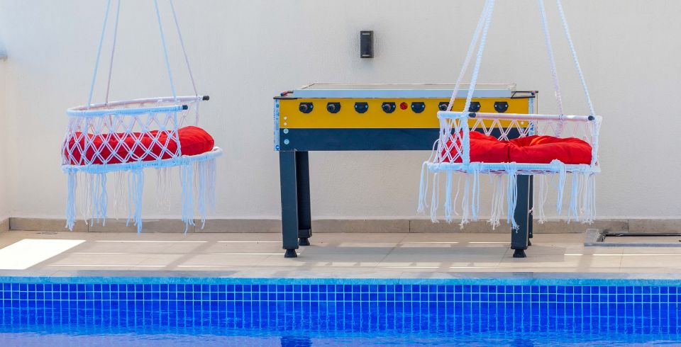 Havuz ve Bahçe: Havuz ve bahçesi korunaklı olup dışarıdan gözükmemektedir. Özel yüzme havuzu, şezlong, şemsiye, oyun parkı, salıncak, masa tenisi, langırt, yemek masası ve barbekü bulunmaktadır.